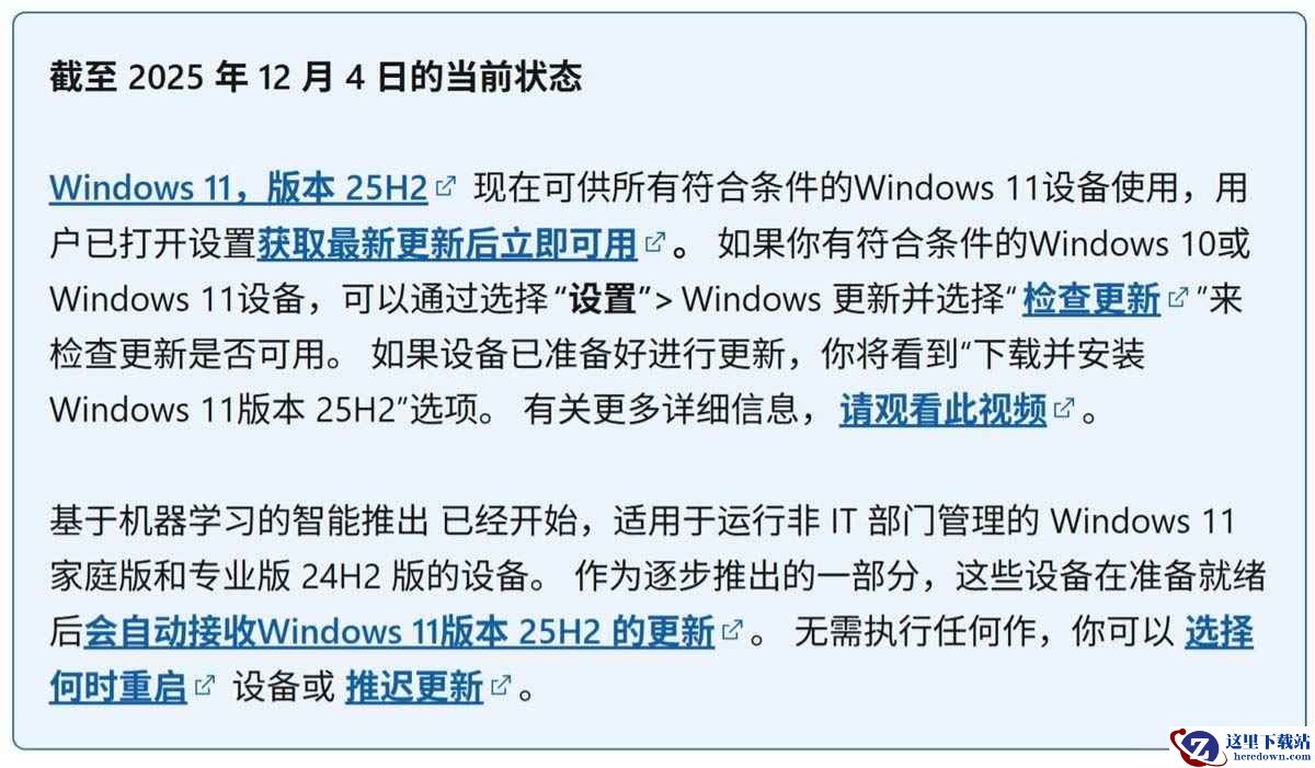 开启后点击“检查更新”按钮,系统若检测到设备符合条件,便会显示“下载并安装 Windows 11 版本 25H2”的选项。附上微软官方日志文件截图如下: