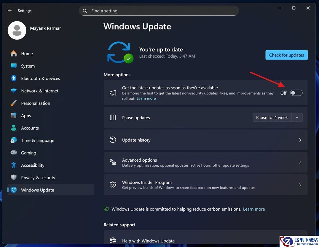 微软简化了获取更新的流程,对于希望提前升级的用户,可以不必等待分批次的大规模自动部署,前往“设置” > “Windows Update”,勾选并启用“在最新更新可用时立即获取”。