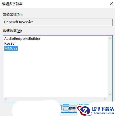 4、编辑多字符串窗口中,找到并删除MMCSS,然后再点击确定保存退出即可;