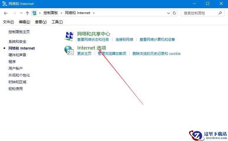 2、接着,继续点击打开“Internet选项”设置。