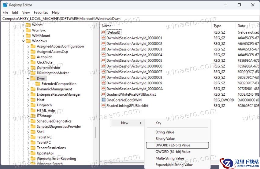 4.在右侧窗格的空白处单击鼠标右键,然后选择“新建 > DWORD(32 位)值”。
