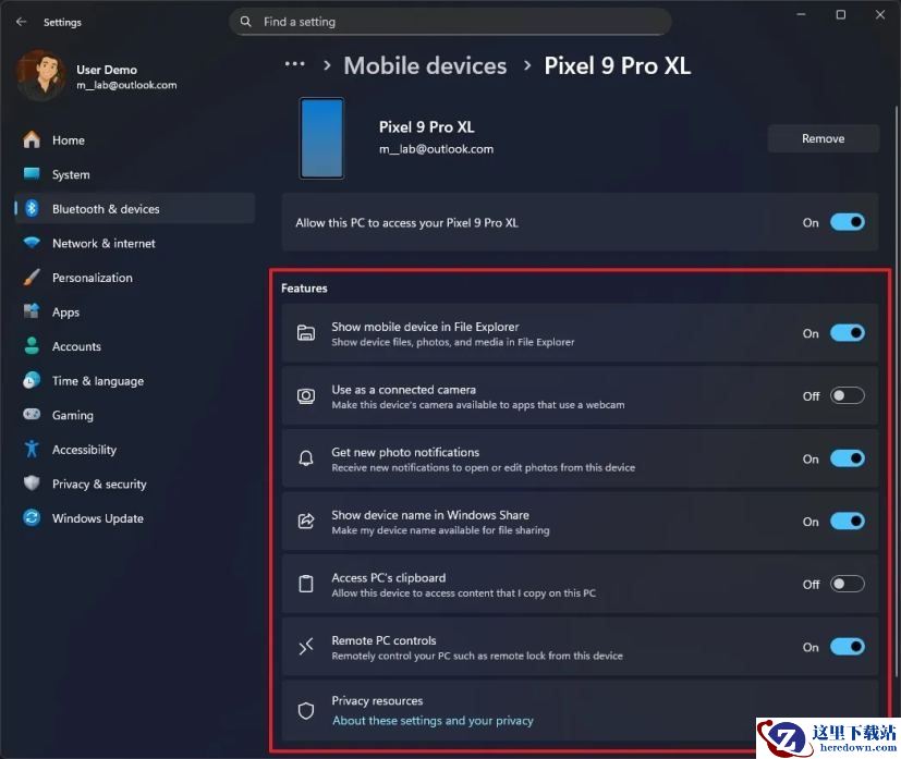 从 KB5070311 更新开始,微软在“移动设备”页面中加入了连接移动设备的选项。