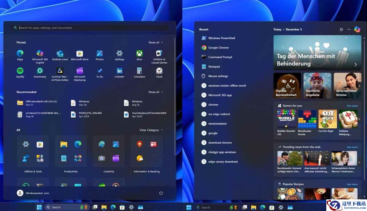 微软还调整了搜索界面的 UI 高度,让其与开始菜单的高度完美对齐,进一步提升了视觉协调性。