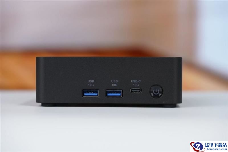 正面有2个10Gbps USB -A接口和10Gbps USB-C接口,旁边是一个电源按钮。