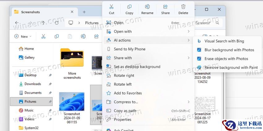 目前的“AI 操作”主要针对图片等特定文件类型,提供背景移除、对象擦除、图像模糊及 Bing 视觉搜索等功能。然而,用户点击这些选项后,系统仅会跳转至“照片”或“画图”等应用程序,而非直接在菜单层级完成处理。