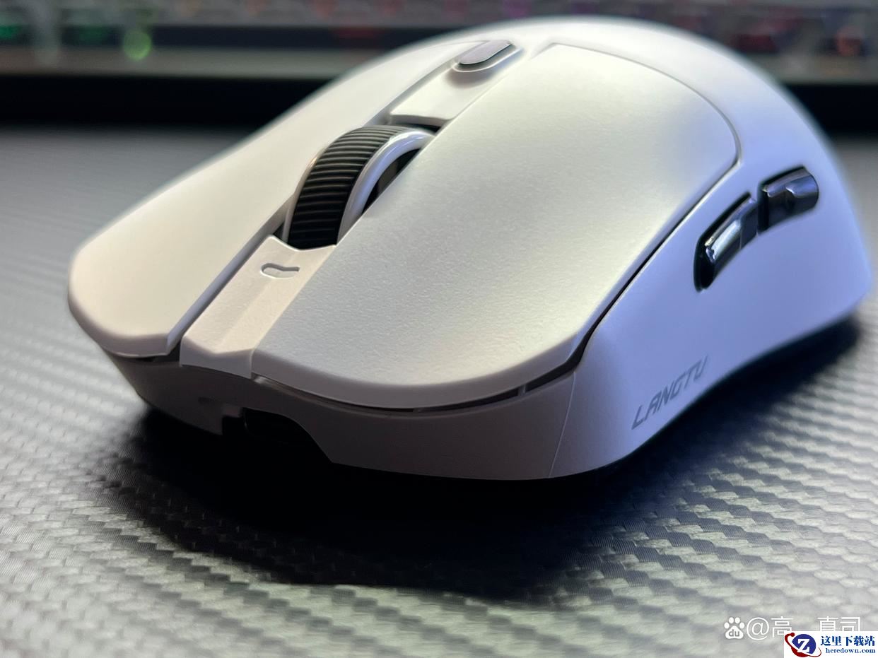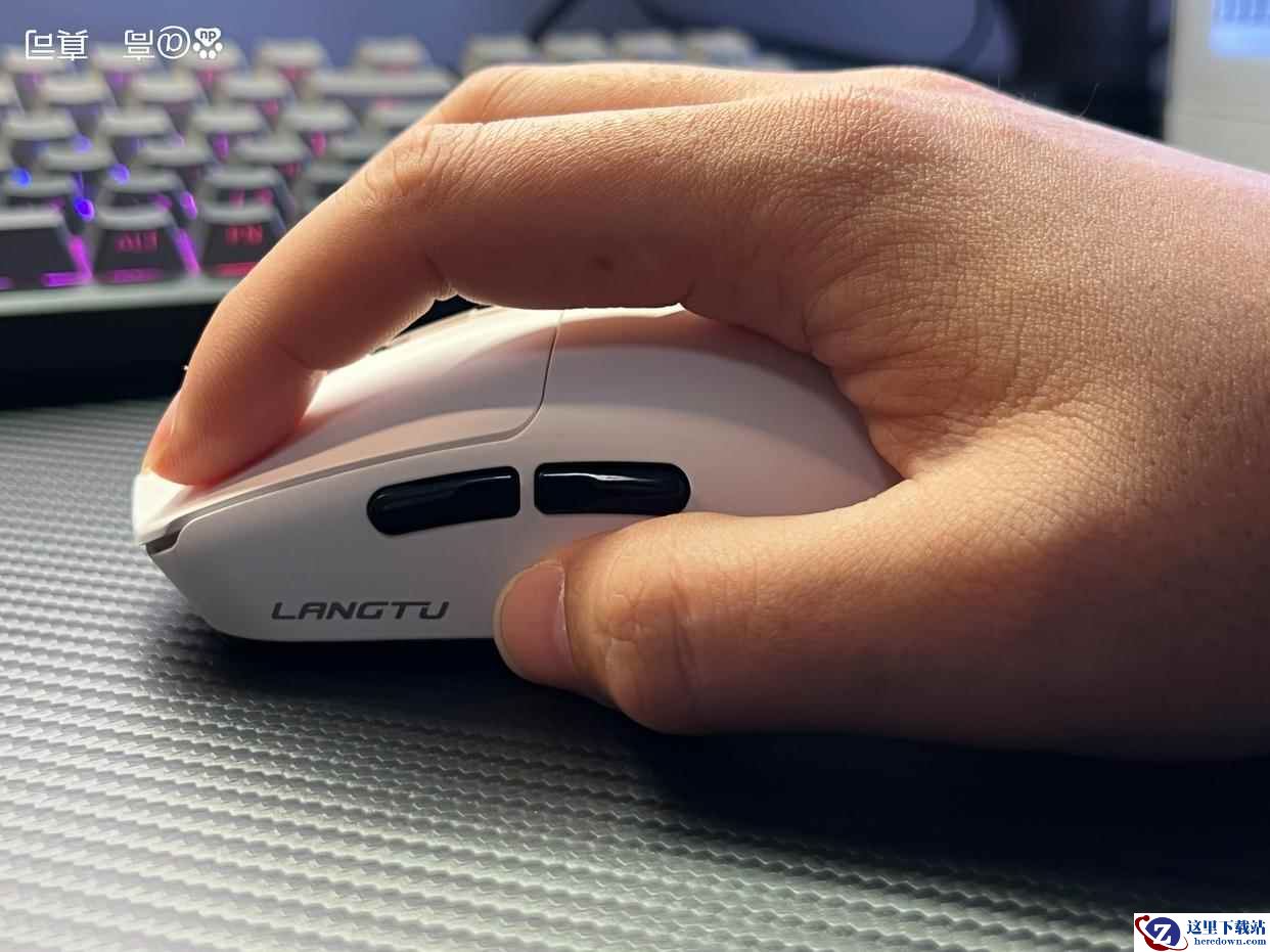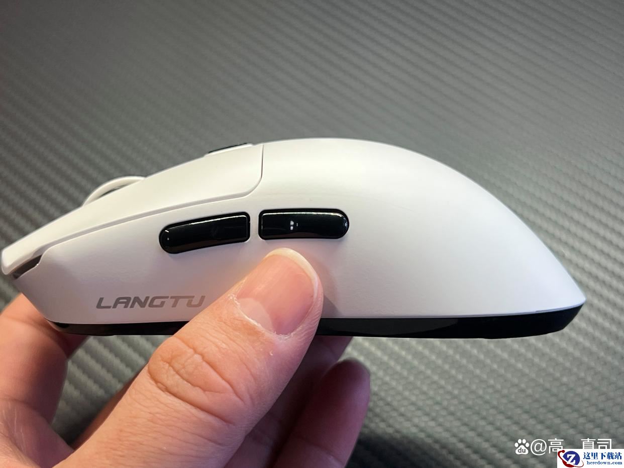 鼠标表面用的是冰肌类肤涂层,这模具搭配这涂层上手的感觉我说实话真不像卖你98的鼠标,唯一暴露价格的是滚轮上方DPI切换键,按起来软绵绵,不清脆。