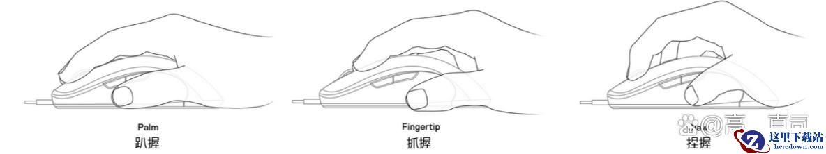 握姿也比较万金油,兼容抓握、指握和趴握,因为侧裙收窄形成的凹面,拇指包括无名指内扣贴合度高、鼠标的掌控感很不错。当然非要细分的话,18cm以下手长趴握无压力,19cm以上大手抓握更合适。