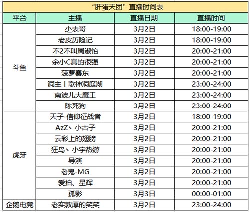 德云色笑笑、周姐周淑怡、菠萝赛东、陈死狗等17位人气主播,3月2日齐上阵,组成“肝蛋天团”,分别在斗鱼、虎牙、企鹅电竞为玩家带来精彩直播,一起深渊提灯。想知道这些沙雕主播会在《提灯与地下城》闹出哪些笑料百出的故事吗?快锁定他们的直播间吧!
