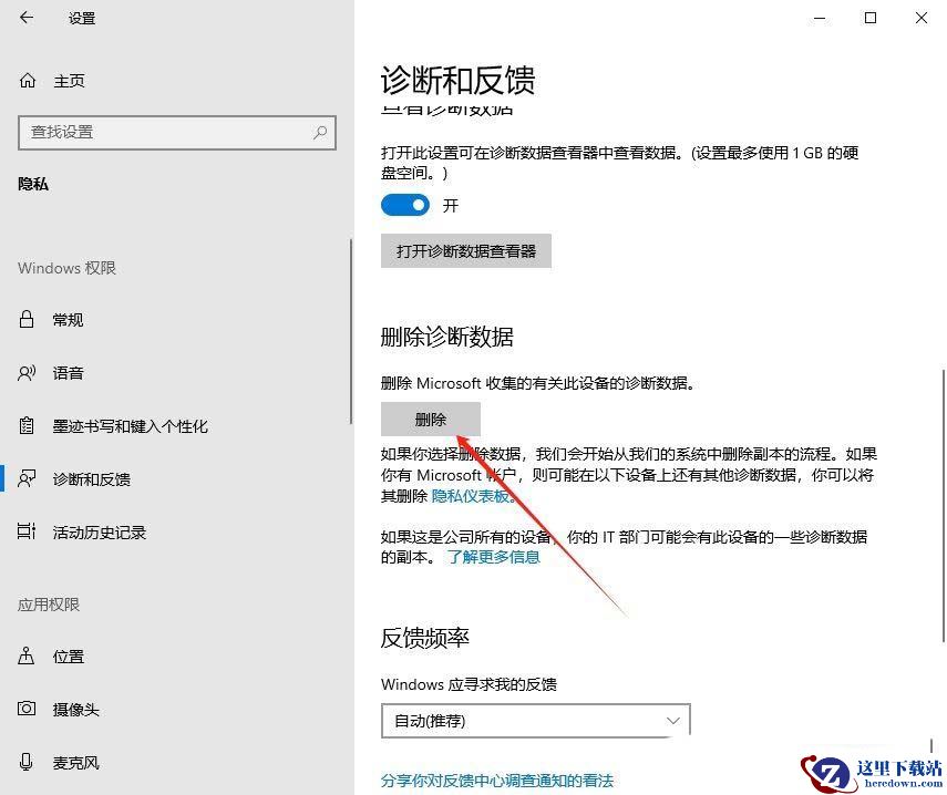 3、然后,在对应的右侧界面中,找到“删除诊断数据”,点击下方的“删除”即可。