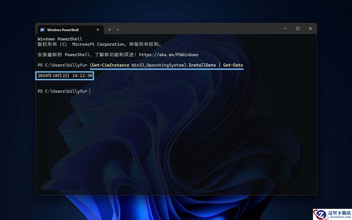 3、执行以下命令,就会直接输出 Windows 11 安装日期: