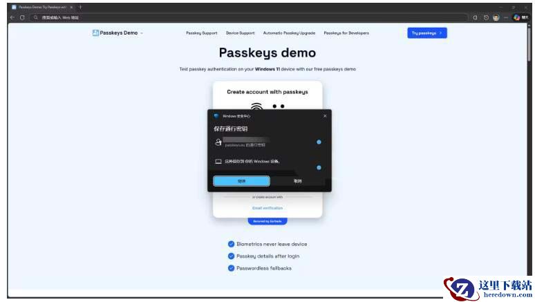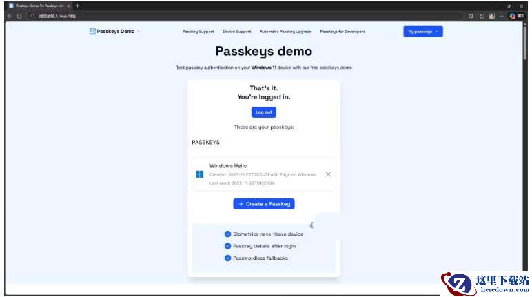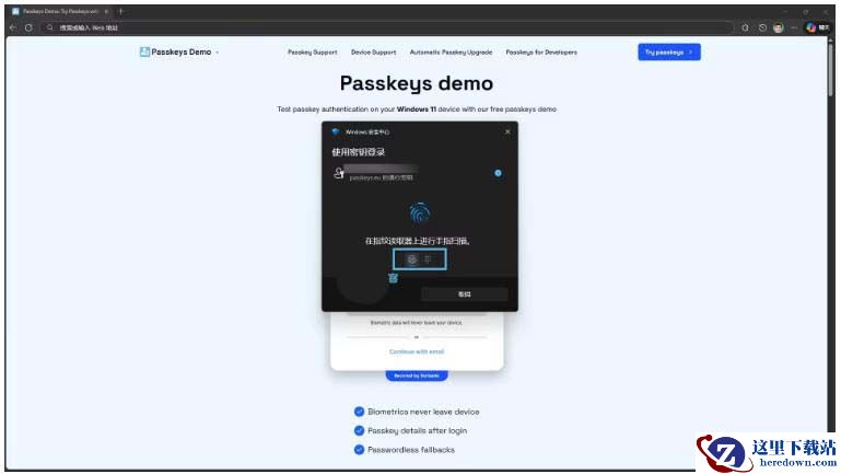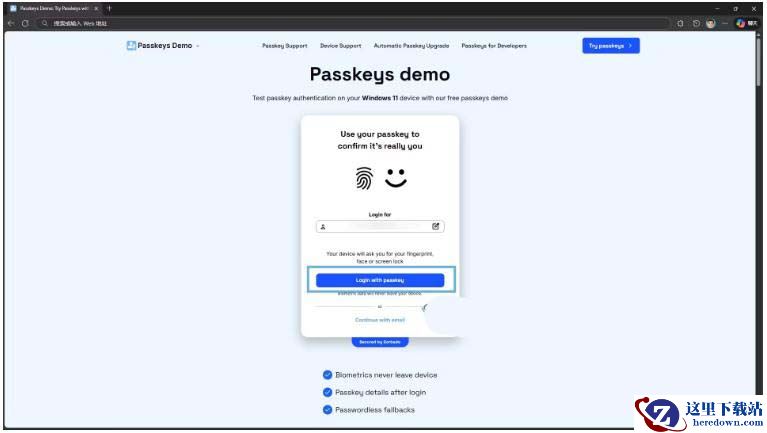 下面,我们就以 Passkeys demo 演示网站为例子进行说明,其它网站的流程也大致类似: