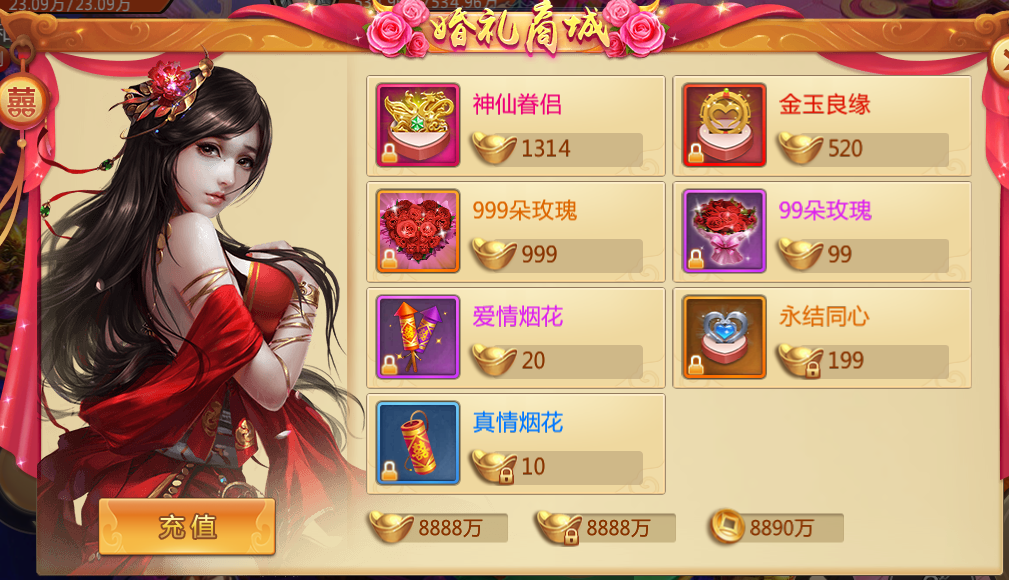 1.1:玩家点击【我要提亲】,进入提亲界面,选择心仪的对象后,可以选择不同档位的彩礼进行提亲。
