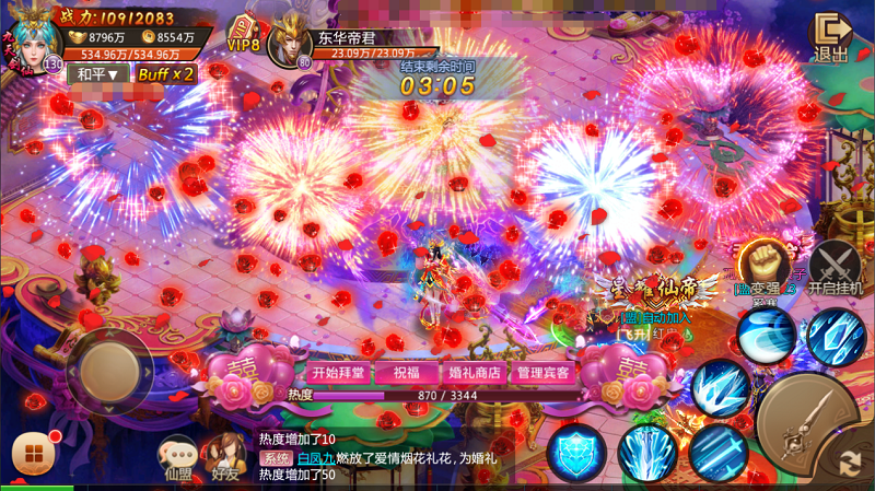 3.1:到达婚宴预约时间后,新人可以点击游戏右上角【婚礼】图标【参加婚宴】按钮进入婚宴场景。