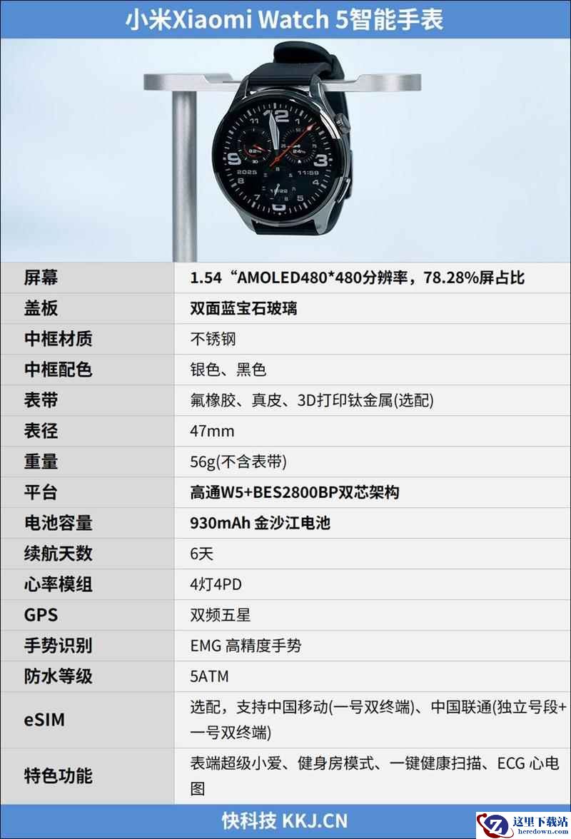 小米手表5的详细配置如下:
