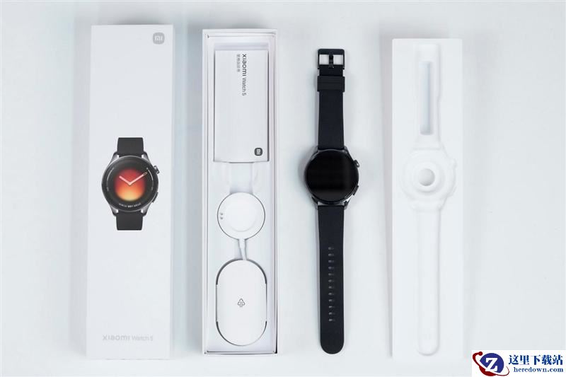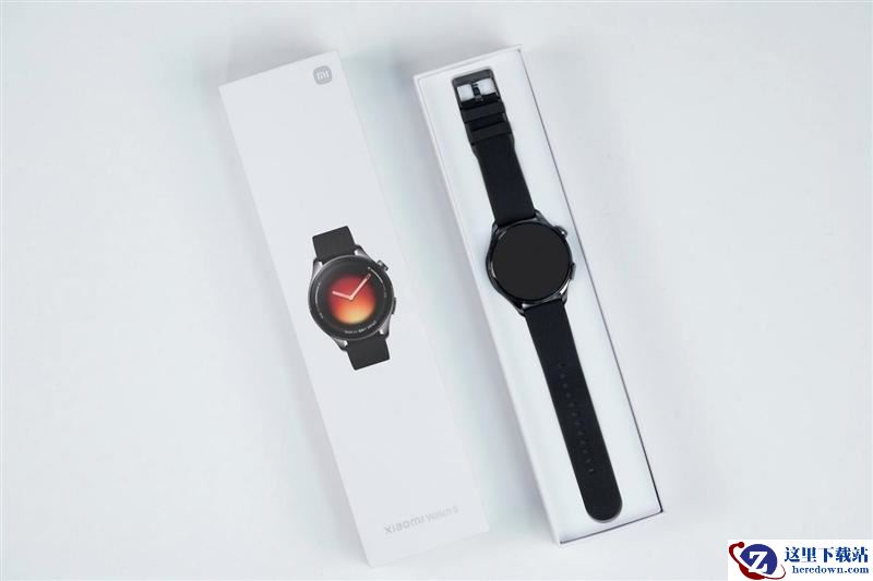 我们收到的小米手表5预装的是黑色氟橡胶表带,小米官方还提供了真皮表带和采用激光粉末熔融增材制造工艺打造的钛合金表带,供用户选配,22mm的标准宽度也方便用户自己选择更多的第三方表带,甚至可以把自己的名表表带换给小米手表5使用。