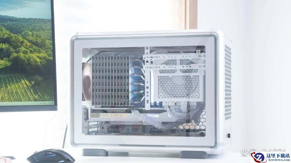 不过在我最后把电源通过支架安装在机箱正面后,其实整体除了不是那么美观,但是在散热风道上也是相对合理的。
