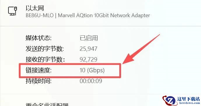 零刻SER9 Max的万兆网卡是来自Marvell AQtion AQC113 10Gbit 万兆网卡,可以看到链接速度为10Gbps,就是大家所说的万兆网卡。同样向下兼容100MB/1Gbps/2.5Gbps/5Gbps。