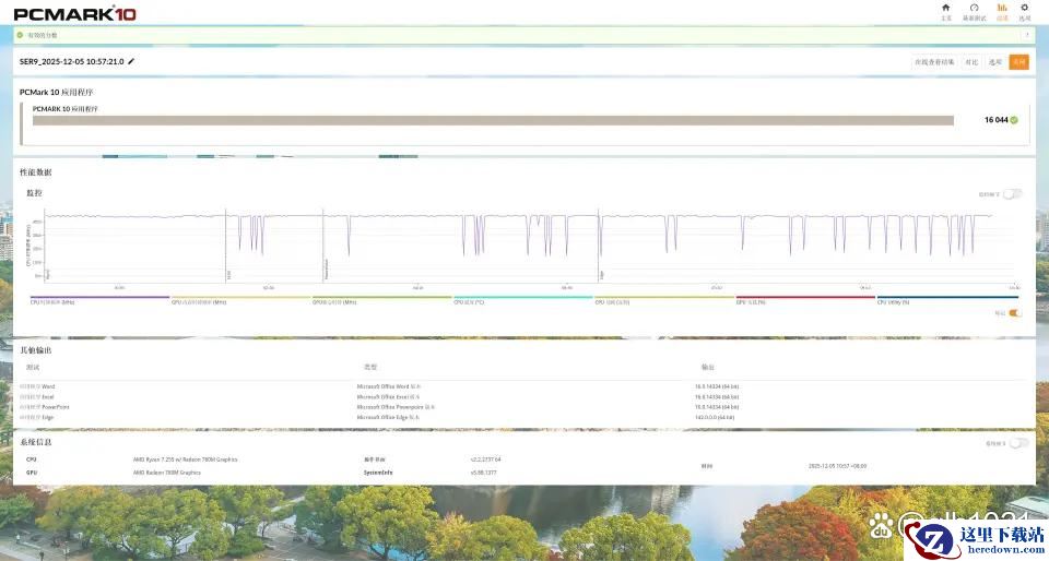生产力测试成绩上还是直接交给测试软件吧,给大家一个客观方便比较的成绩。首先是PCMark 10的Office 办公软件测试成绩为16044,大家可以参考一下。