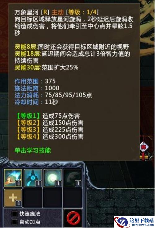 算一个控制技能,难度比较的高,毕竟需要2秒的延迟,作用范围也是比较的低,可以拿来当作一个后手控制技能,前期并没有太大的作用,质变就是18层以后,具有延迟伤害3倍智力伤害了