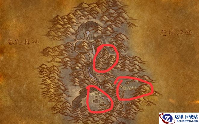 卡拉赞和罪恶谷在地图上有标志,而死者十字是去悲伤沼泽的路口。