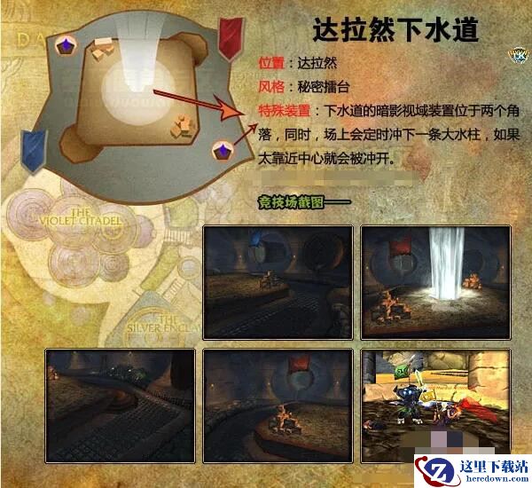 中间会有瀑布,每隔一段时间会落下,阻挡玩家的视野,如果正好处于瀑布下会被击退,这个地图需要注意的是如果被打下高台,那么尽量从右边上台阶。