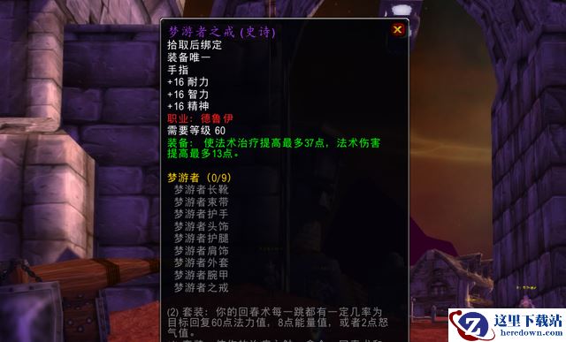 6.德鲁伊获取梦游者两件套:梦游者(T3)两件套效果让回春术每一跳都有几率为目标恢复60法力、8点能量或者2点怒气值,在巫妖王之怒中,德鲁伊将在恢复系天赋树的尽头获得一个名为“复兴”的新天赋,这个天赋效果和梦游者两件套相似。