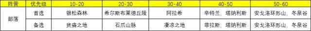 部落的选择比联盟要少,人员也更集中,贫瘠之地线的人气爆满,所以尽量选择前往银松森林那一片,从上往下,刚好能到45级左右。