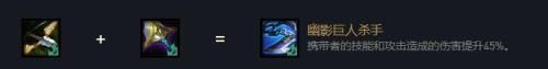 黑巨杀合成路线为黑大剑加黑白攻速,黑巨杀现在版本获得了增强,攻击血量超过1150的对手,直接增加携带者伤害的45%(好像国服面板是50%),理论上这件装备所有主C都可以带,但是别的阵容主C一般都有更合适的转变,所以这件装备一般作为德莱文的主要输出装备,这件装备前期提升不是太大,一般作为第二件或者第三件装备合成。