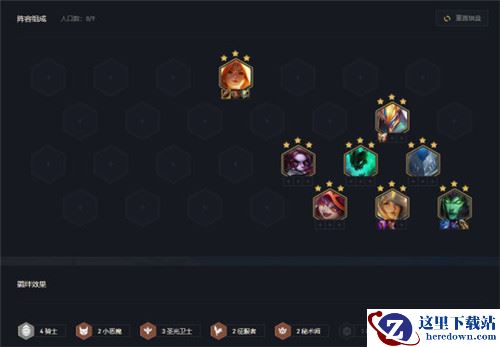 此阵容前排以4骑士为主,再搭配秘术或者铁卫将坦度拉满,后排3星神装的滑板鞋Q具备秒杀伤害,有充分的时间瞬间斩杀全场。前期5人口找3星滑板鞋,6人口即可成型,7到8人口都是补强,将赌狗玩法的优势完全发挥。
