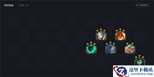 图中所有英雄都是低费卡,绝大部分都是1到2费,主要靠3星拉质量补强度,同时因为低费卡较多,所有5到6人口之间赌3星的性价比极高,8人口中拿到4到5个3星都很正常。前期靠3星主C吃连胜,连胜经济转化为其他3星,后期就靠质量补强度。