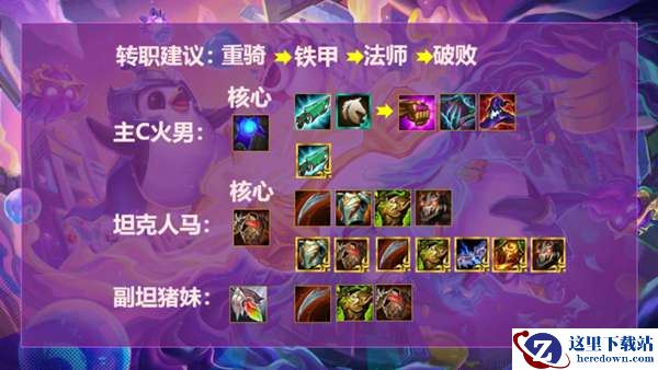 副坦猪妹:完美神装救赎龙牙狂徒,跟着人马捡多余和冲突的光明防御装备,因为没有恢复能力,主要吃救赎和狂徒的搭配或者光明防御装。