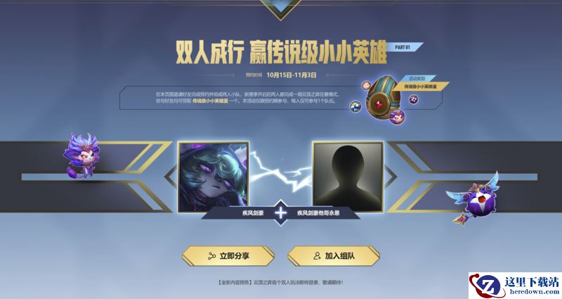 邀请好友完成预约,组成两人小队,新赛季开启后完成一局云顶之弈任意模式,你与好友均可领取传说级小小英雄蛋一个。另:云顶之弈全新双人模式也将于第六赛季中正式上线,敬请期待。