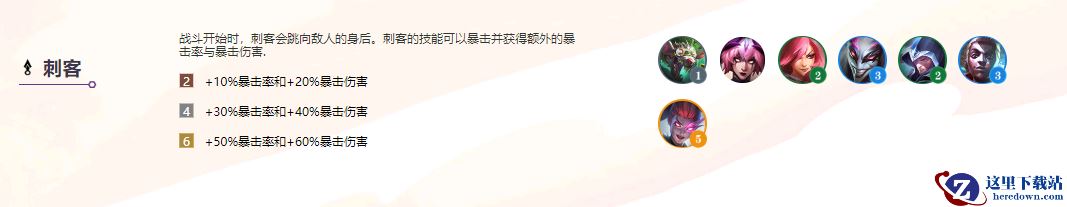 辛迪加刺:刺客虽然有极高的爆发,但是自身十分的脆,在跳到后排和容易被秒,而辛迪加的羁绊效果可以增加刺客的坦度和续航,增加保命能力,刺客可以尽情的输出。