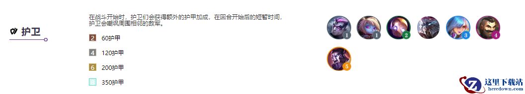 护卫狙神:s6的护卫羁绊和以前的护卫,铁甲羁绊不一样,s6的护卫棋子开局自带传送门嘲讽。但是护甲加成是只有对护卫有加成。狙神羁绊是S3老羁绊复刻,距离目标越远伤害越高,配合护卫前排嘲讽,狙神棋子可以尽情输出。