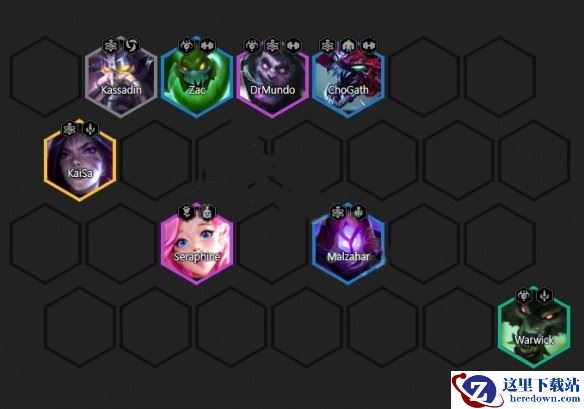 这个阵容只要5个变异英雄就完成了,该羁绊有6个英雄,非常好出,6人口就能锁血。