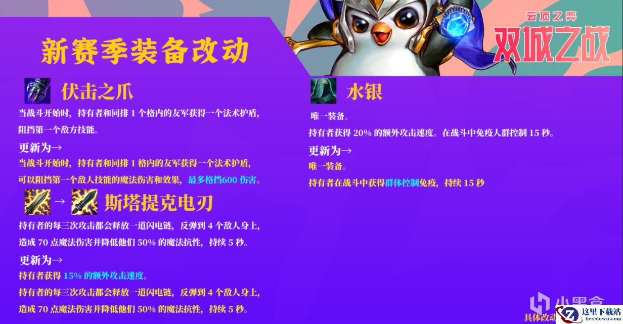 云顶之弈S6双城之战装备改动了什么?云顶之弈游戏即将迎来S6双城之战版本,很多小伙伴不知道这个版本装备更改了哪些内容,这里我带来了一份详细攻略,希望可以帮助到大家!