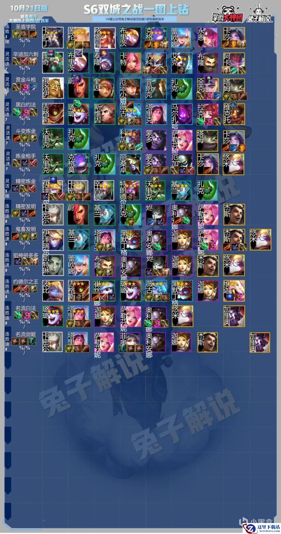 一图上钻的阵容更新到了13个,优化了一些细节的装备,比如大嘴不再吃飓风(没特效了),根据实战调整了一些阵容的装备和羁绊变化,当然因为海克斯的原因,所以每个阵容都有极高的变化和上限。
