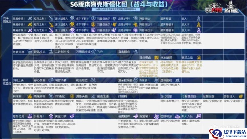 兔子几乎把海克斯的图优化到最完美了,现在连各个海克斯的图标都加上了,除了少量10几个目前没有图标的,其他的海克斯全都有了,这样大家就可以轻松的对照学习各种海克斯强化了(没办法,图标文字都要看,不然看别人身上的图标你都不知道他拿了啥,如何针对)。