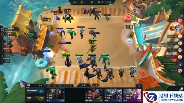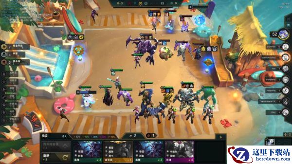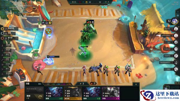 继续拉人口上9,这时候阵容就慢慢开始乏力了,但凭借高血量分已经吃到了;接下来想吃鸡的话需要考虑看装备后期养个副C,这把我们选秀拿了个刺转螃蟹,所以直接拉9开4刺用螃蟹当副C。