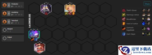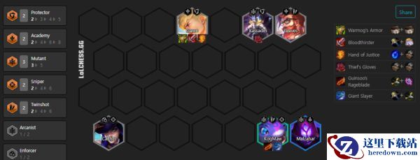 盖伦(副C):吃圣盾、战争学院羁绊,且是优选的变异转职佩戴者,3星基础加补狂徒+续航装,搭配圣盾放技能无限盾制,又肉伤害又高