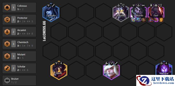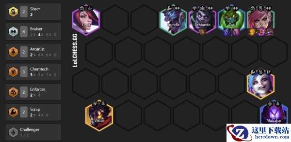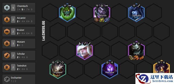 这套阵容理解非常简单粗暴,主要就是蒙多与厄加特一个全坦出装一个纯物理DPS,装备上物理输出装备就好,多余属地法强给予风女就好。阵容5炼金后开始起飞,蒙多就像一个不死的战神。