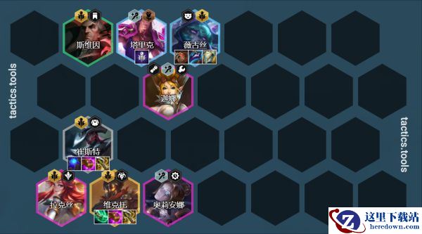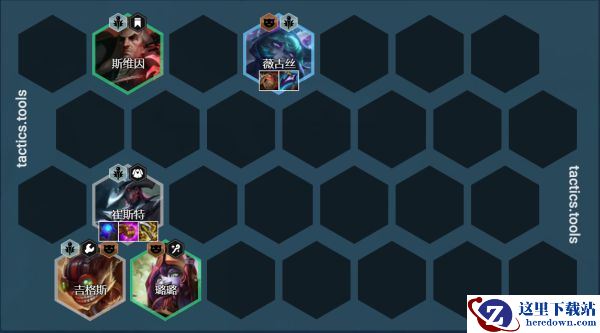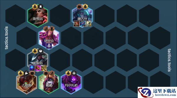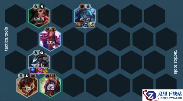 阵容组成:崔斯特、奥利安娜(璐璐3星用璐璐)、斯维因、薇古丝、塔里克、马尔扎哈/拉克丝(吉格斯3星用吉克斯)、迦娜、维克托
