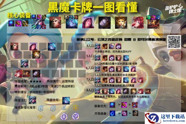 这套阵容核心羁绊是6黑魔法师,3白魔法师和2白魔法师的差别意义不是特别大,我们需要的是黑魔法师对于阵容整体的强度提升,如果有符能护盾的情况下,法强越高,整体收益则越高。