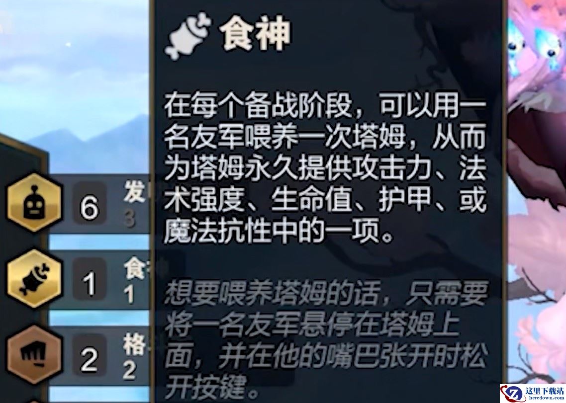 无限成长的塔姆。这个英雄在每一回合开始的时候,都会要求我们给他上主菜,也就是把一些英雄喂给他吃。每一种英雄都会给予塔姆独特的属性加成,比如格斗家会增加塔姆的血量,法师会增加塔姆的法强,保镖会增加塔姆的护甲值等等。塔姆的存在让我们把云顶之弈完成了一款“养成类型”的游戏,还真是非常的有趣呀。