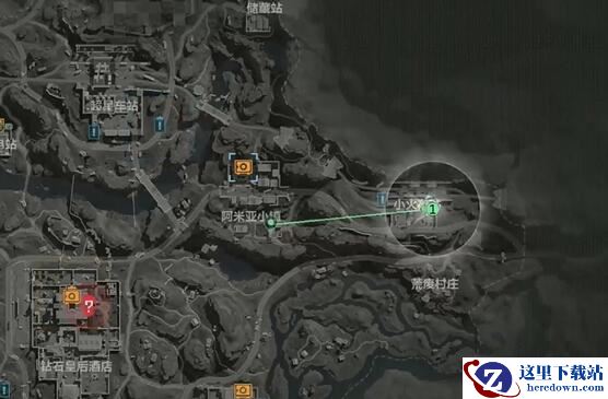 1、从出生点小火车站这里出来之后一直向西边走就可以到达阿米亚小镇。