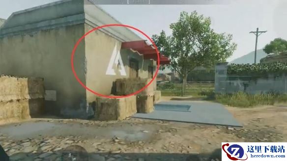 2、进入小镇之后寻找一个墙上有三角形的符号的位置。