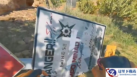 线索3:再前往村庄左边的雷区,靠近牌子让地雷炸就可以看到线索。