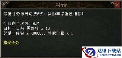 温馨提示:当日未完成的除魔任务次数不会累积到第二日。领取后放弃的任务也将累积至当日任务次数。