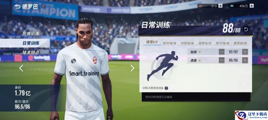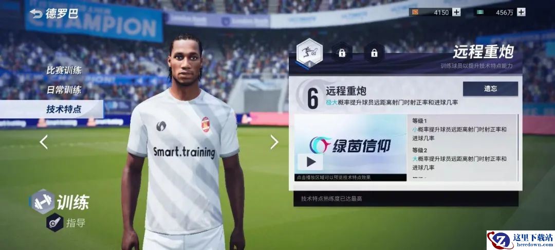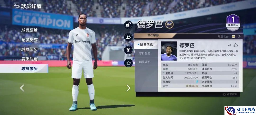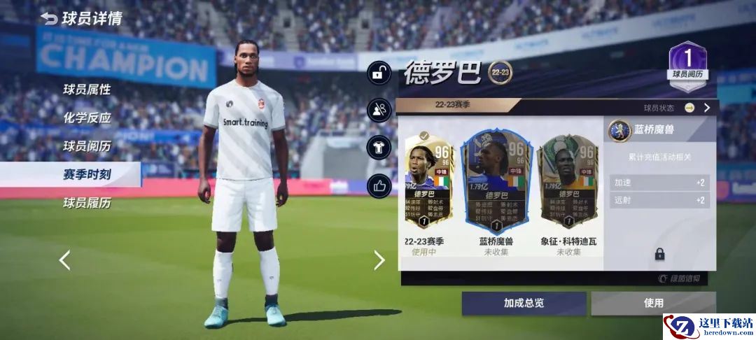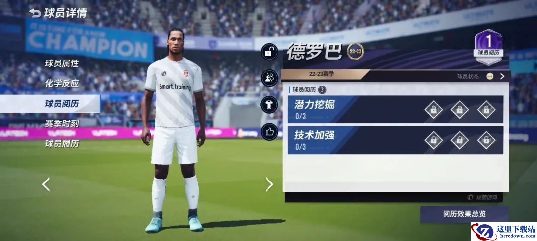 从阵容或者球员管理界面,均可进入球员详情界面查看球员相关信息,通过训练球员进行球员培养(本文采用图片素材为3日前共研服球员信息,提前为没有参与共研服测试玩家展示封面任务德罗巴)。