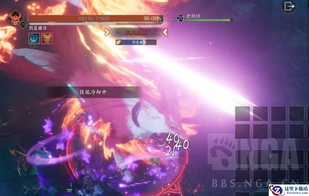 技能1:烈炎耀日,对当前仇恨目标打一个蓄力三道火光,读条后躲开即可(技能较宽,别贴BOSS)